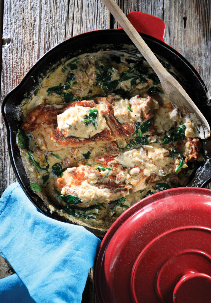 Σολομός με σπανάκι και λιαστές ντομάτες